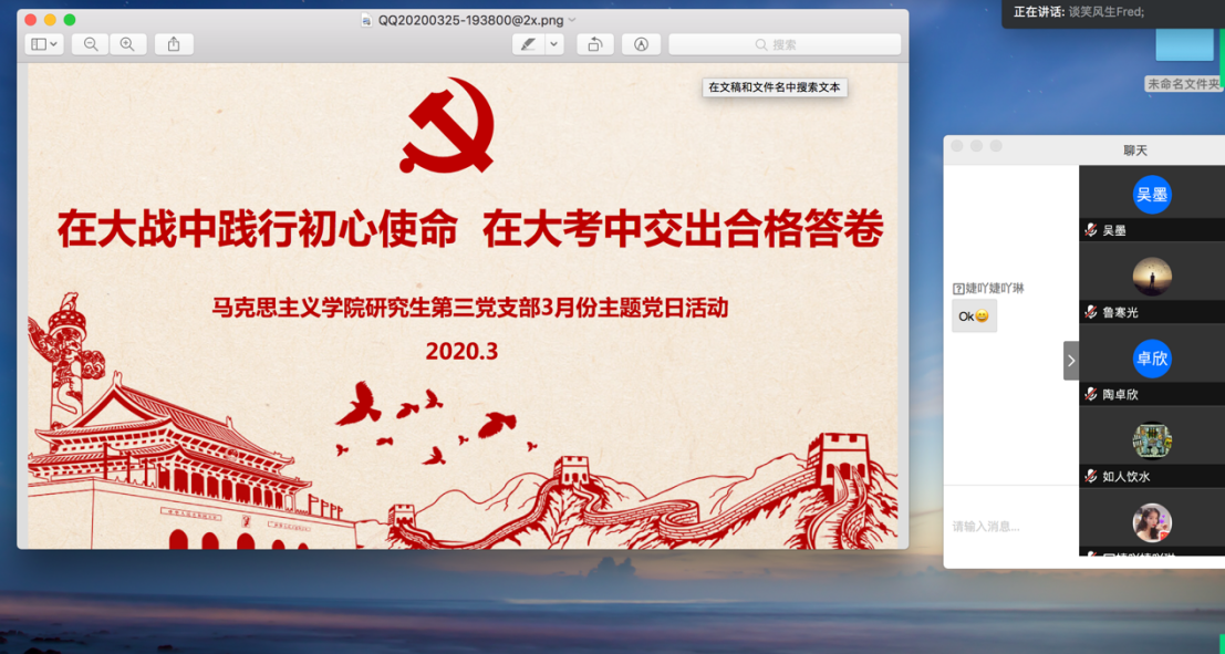 研究生第三党支部利用腾讯会议平台,开展了“在大战中践行初心使命 在大考中交出合格答卷”3月份线上主题党日活动。