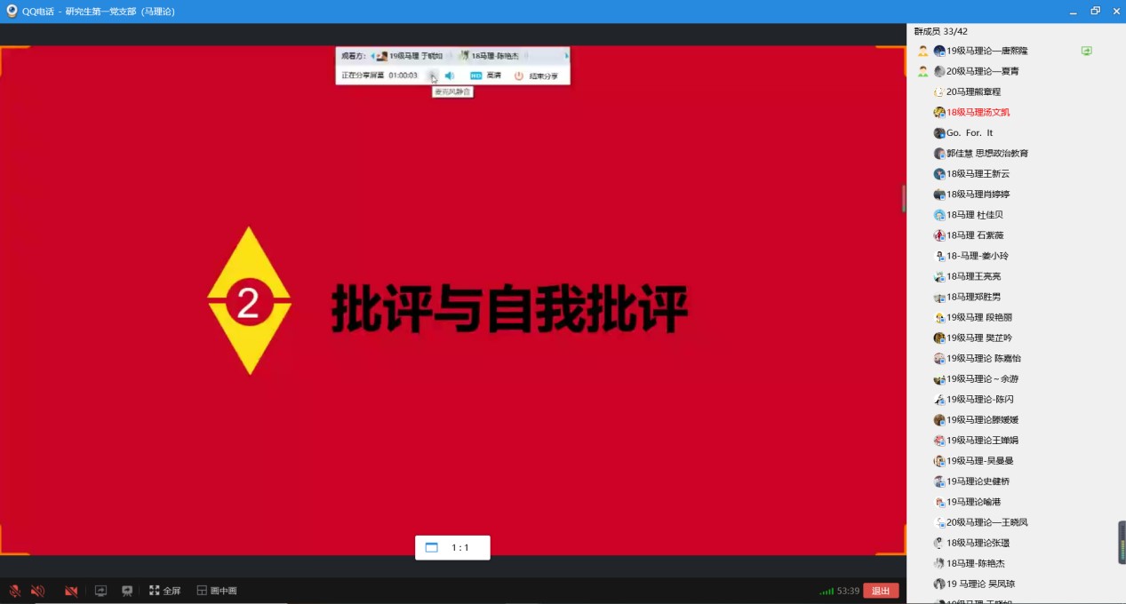 研究生第一党支部采取线上线下相结合形式召开党史学习教育专题组织生活会。