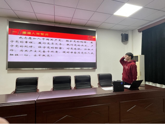 会议开始,在完成入党宣誓、学习党章、交纳党费之后,邢烨达同志领学了全国两会上有关新征程中国外交的重要内容,通过他的领学,大家进一步领悟了青年人在中国外交中的重要作用。随后,支部以习近平总书记的重要讲话为切入点,开展了“党员不得信仰宗教”专题教育活动。