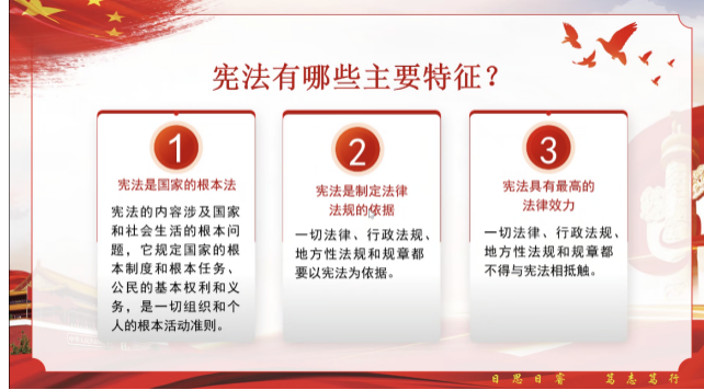 法规的依据,宪法具有最高的法律效力。12月4日宪法日的设立有利于依宪治国,依宪执政的贯彻。此外,与会党员还一起观看了习近平主席宪法宣誓的视频。