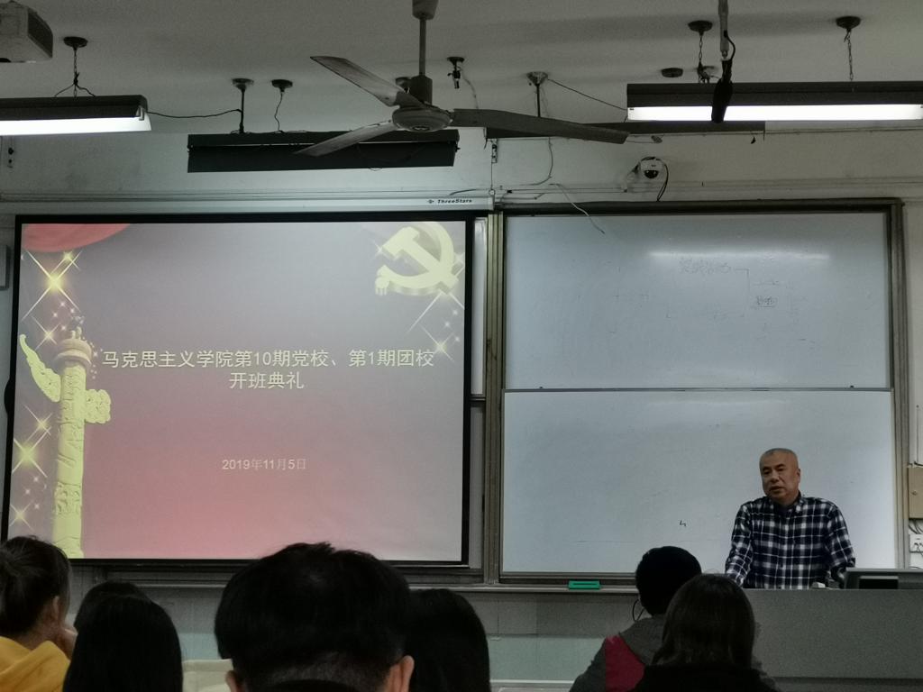 第十期党校暨第一期团校开班典礼在教二210教室隆重举行,学院党委书记、党校校长汤德森出席典礼,学院党委副书记、党校副校长王雄及院团委书记邹浩出席开班典礼,王雄主持开班典礼。