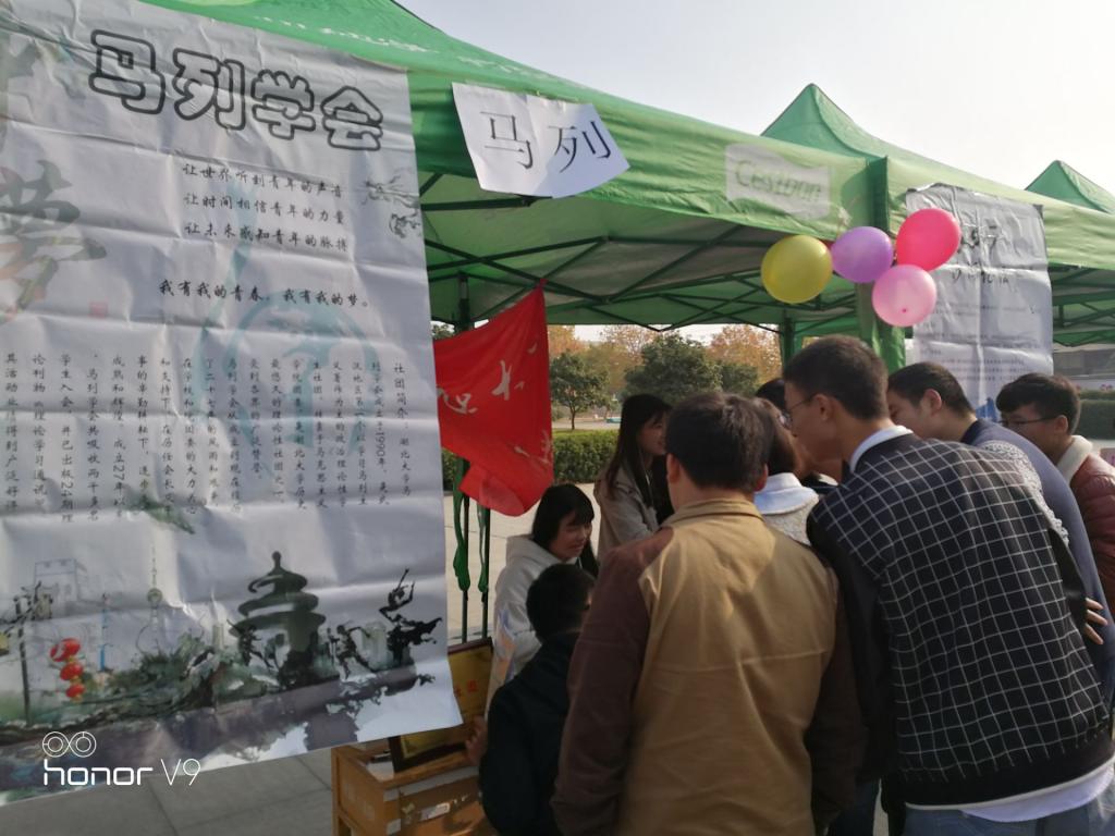 开展社团招新活动。在马列主义学习研究协会、沙湖论坛和廉政文化学习协会各负责人布置好招新帐篷之后,招新活动于上午九点正式开始。