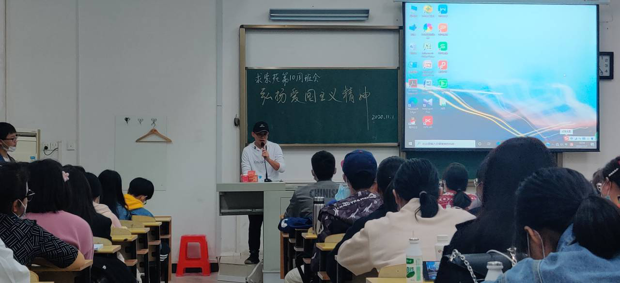 在交流活动开始之前,王成子越为20级学生们介绍了19级班委成员及优秀学生代表覃扬帆和孔俊轩,同学们用热烈的掌声欢迎了学长学长们的到来。