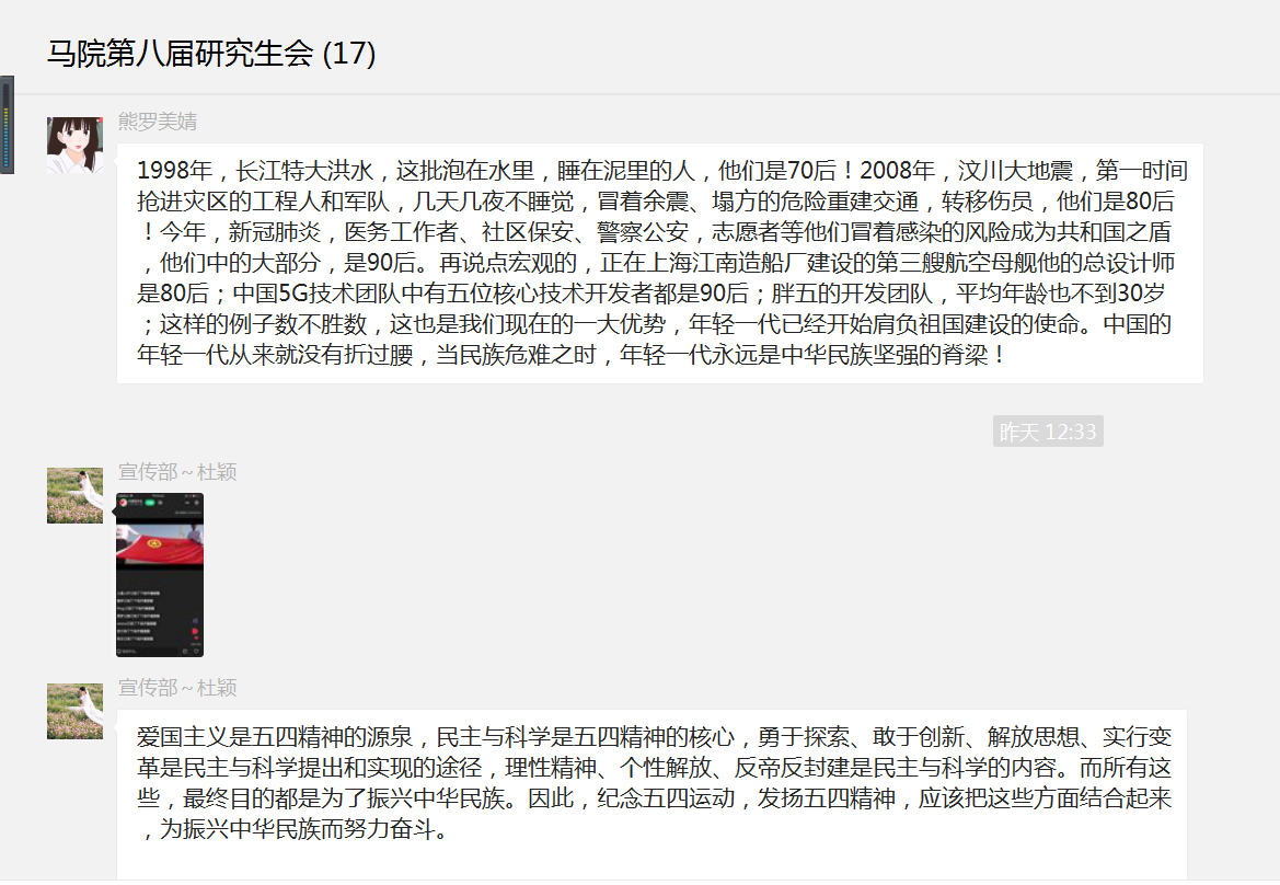 我院研究生会全体成员积极响应,全程观看线上主题学习活动,并积极分享自己的心得体会。