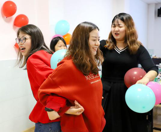 联谊会在热身游戏“Who am I”中拉开序幕。同学们在游戏中建立了初步的认识,现场的气氛也由此点燃。此次活动主要包括学长学姐经验分享和畅谈你我之话题讨论两个环节,同时,抢水瓶、你画我猜、挤气球等互动竞赛游戏穿插其间。