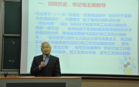 党委书记孙永祥致开幕词,向与会人员表示热烈欢迎并预祝论坛圆满成功。随后,张耀灿教授作专题报告《新时代青年如何继承和发扬五四优良传统》,围绕继承五四优良传统,对新时代青年提出了几点要求:一是回顾历史,牢记毛主席教导;二是学习先辈,坚持青年运动正确方向;三是听党召唤,为民族复兴而不懈奋斗。最后,杨威教授作专题报告《新时代马克思主义理论类专业学子的历史使命与国际视野》,提出新时代马克思主义理论类专业学子的历史使命有坚持和发展马克思主义的理论使命、学习研究马克思主义的学术使命以及传播践行马克思主义的职业使命,并结合五四运动的背景与原因强调新时代马克思主义理论专业学子应当具有国际视野。