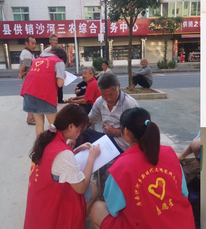 在城关镇发放两天问卷后,7月3日团队成员一行来到了尹吉甫镇。上午,团队成员在集镇上发放问卷,认真观察,留心记录老年人真实的生活状态;下午,成员们分工协作,整理问卷。7月4日,团队成员来到了本次社会实践的重点站——沙河乡。并在当地政府的帮助下,开展了一系列的调查研究。
