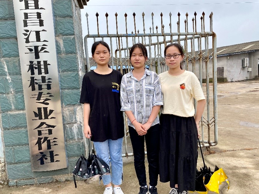 (图为实践团队成员在江平柑橘专业合作社前的合影)