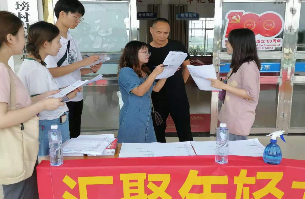 (图为团队成员在采访村民并填写调查问卷/袁金舞摄)
