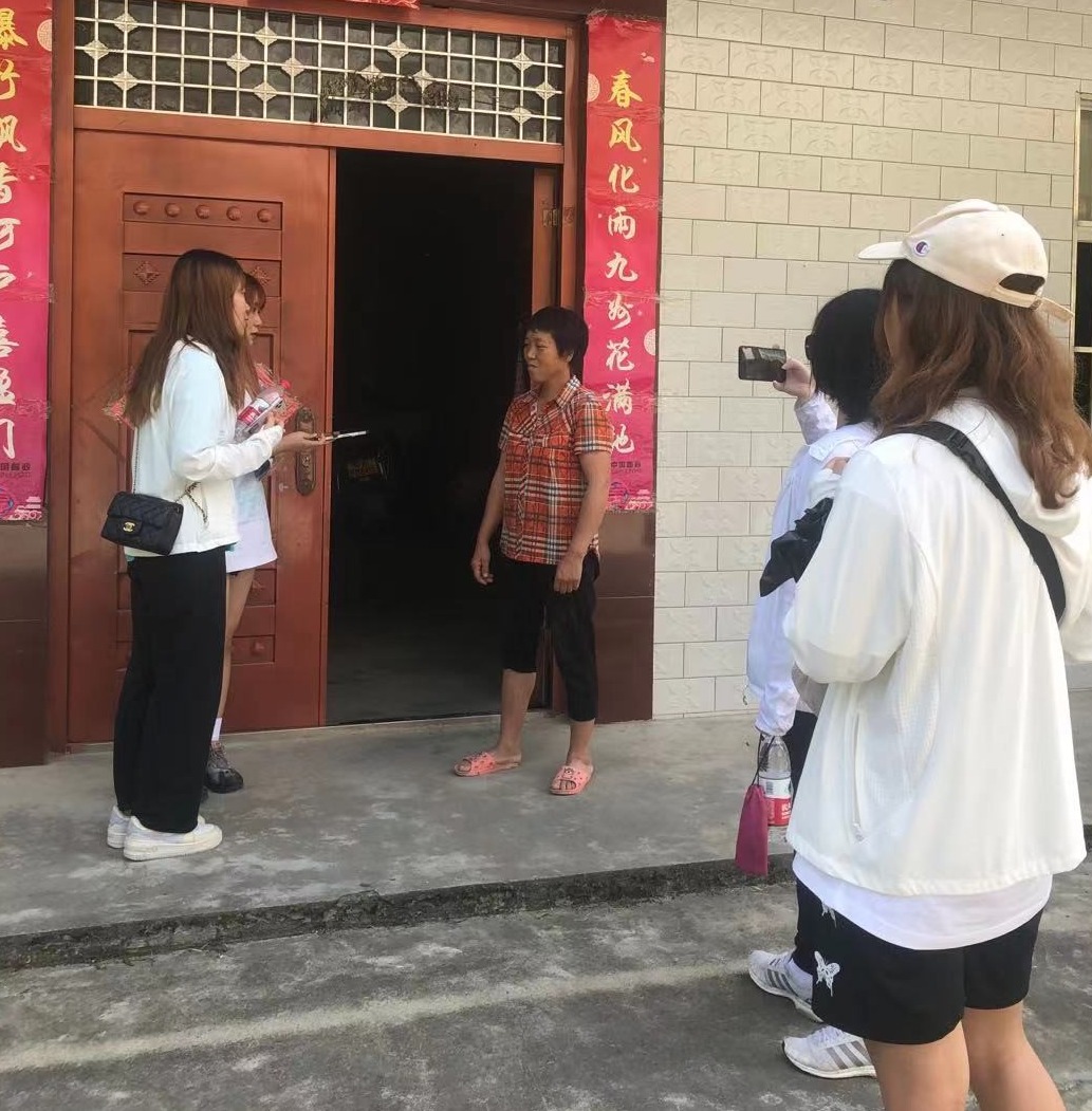(图为团队成员对后坪村居民进行采访)