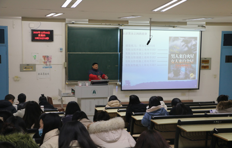 讲座伊始,范磊老师主要从爱情的概念、爱情的类型、友情和爱情的区分、男女之间的差异、如何应对失恋五个方面进行了讲解。通过对“盲人夫妇”、“天龙八部”、“一对情侣同一天的日记”等案例的分析以及斯滕伯格爱情成分理论的阐述,向同学们强调了大学生恋爱相处的重要性。随后,范磊老师对爱和爱情的类型作了分析。他指出,完美的爱包括浪漫的爱、伴侣的爱、空洞的爱、愚昧的爱、喜欢、迷恋,他希望同学们能够在明晰爱情类型的过程中懂得什么是爱、怎样去爱。另外,范磊老师分别展示了男女生最受欢迎和最不受欢迎的品质排名,告诫同学们谈恋爱既要从道德层面又要从生理层面去了解对方,指导同学们如何正确选择恋爱对象。