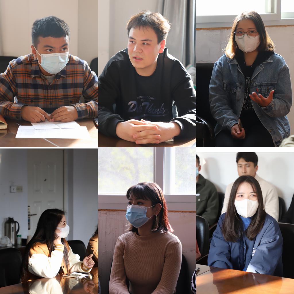 与会同学畅所欲言。依力扎提·依明同学围绕其社会实践从南疆脱贫、新农村建设和文化润疆三个方面为大家分享经验;古艾仁萨·阿布杜扎伊提同学表示,返乡后在村委会的经历使他感到家乡正在慢慢变好,对建设家乡充满了热情;艾克热木江·艾尔肯同学则在返乡后积极响应号召,作为志愿者参加各类活动,深刻地体会到了家乡的发展与变化;苏里克·乌日吉力佳同学通过对民族独特文化的探索,希望尝试别样的视角记录与传递文化。何影同学讲到,自己在寒假进入武汉一派出所开展社会实践,认识到,要以为人民无私奉献的警察为榜样,做好自己,贡献青春力量。