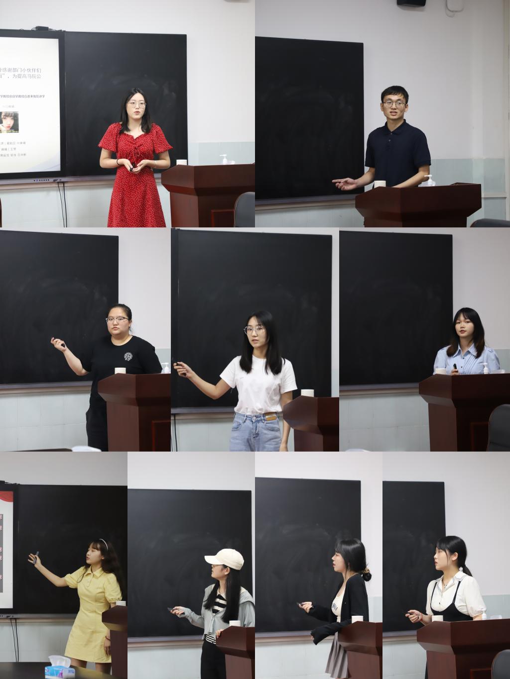 各位成员分别从工作内容、工作收获、工作态度、工作感受展开汇报,详细介绍了2021年度的工作情况。宣传部向美晴、夏聪蕊、王琴、严宪用详实数据汇报了过去一年宣传部的工作内容以及取得的成果;生活权益部李兆鑫、李唐向大家具体介绍了部门所举办的各项活动,并分享了活动经验;办公室韦雨忻展示过去一年研会所有的考勤和活动举办记录;学术部赵湘琳在汇报中表示,感谢研会给自己带来的一系列全新体验,给自己的研究生生涯留下深刻印记;文体部张伊伊向大家分享进入研会之后举办的各项文体相关活动,带领大家回顾那些属于马院人“文武双全”的快乐时光。
