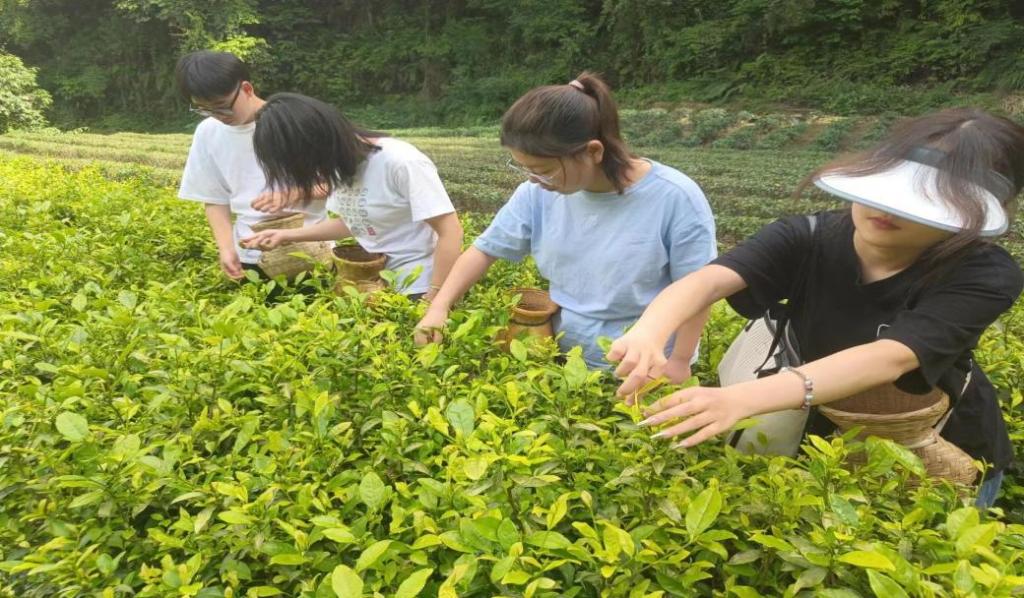 (图为实践小队成员于兰田村茶基地体验采茶活动 通讯员 肖芳 供图)