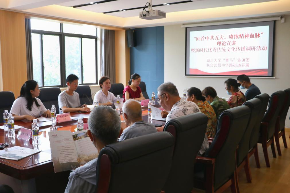 “青马”宣讲团6位成员赴中华路街道都府堤社区交流座谈。中华路街道办党建办公室科长李洁,户部巷、楚才、西城壕、都府堤四个社区相关负责人、“红巷爷爷”代表、都府堤社区居民代表、新葡京
