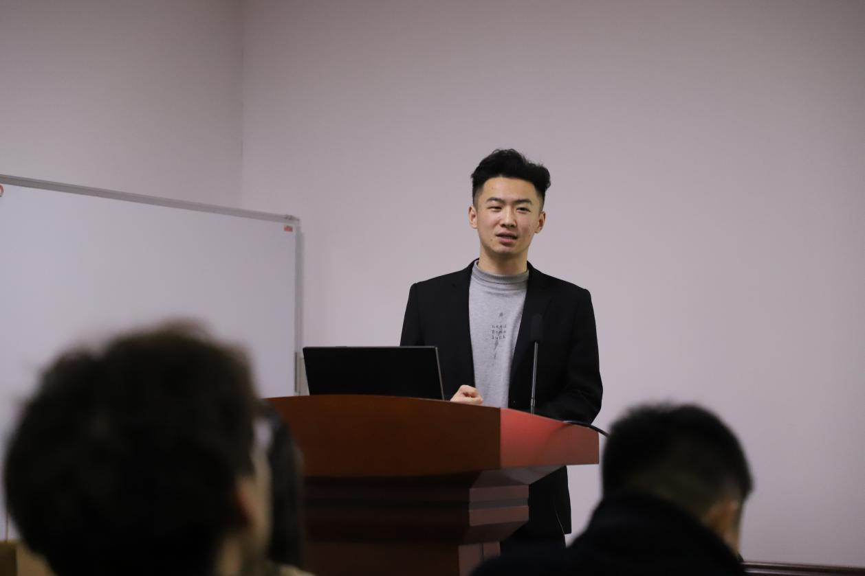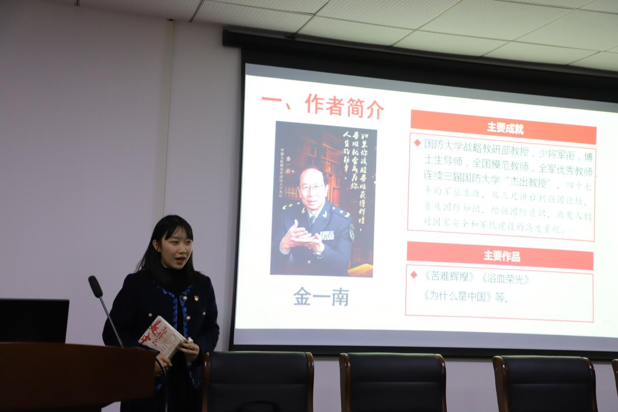 杨浩余同学正在为大家进行读书分享)
