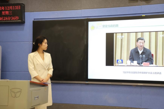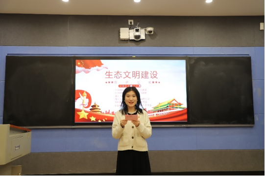“青马”宣讲团成员张燕以《弘扬生态文明,共筑绿水青山》为题进行宣讲。她带领我们回望来时路,指出生态文明建设在国家发展战略中的地位越来越突出;走实脚下路,她指出新时代生态文明建设取得的重大成果;远眺未来路,她表示中国青年生逢其时,必须要担大任、识大势、明大理,做生态文明建设的践行者、创新者和引领者。