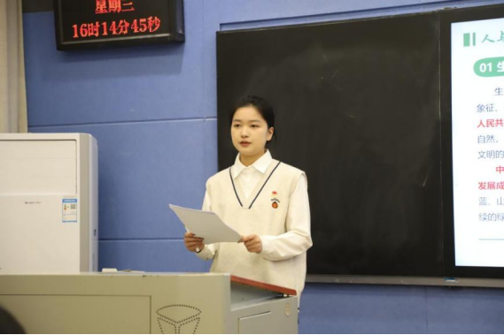 中国地质大学“绿水青山”宣讲团成佳仪以《青年行,点亮中国绿》为题,围绕“人与自然和谐共生”、“灵山‘蝶变’”、“地大青年‘行’点亮中国绿”、“知行合一,绽放青春之花”四个模块,理论联系实际,结合炭合团队、长江源科考实践团的事迹,深入浅出地展现了时代青年在扎实推进人与自然和谐共生的现代化建设、在积极投身美丽中国建设中勇担使命、勇毅前行的精神风貌。