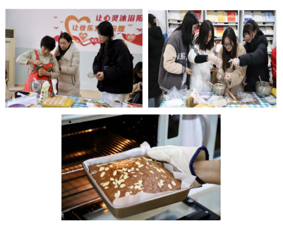 沙龙活动以烘焙、美食分享和交流互动的形式进行。打鸡蛋,和面,制作奶茶……师生分工合作,有条不紊。在轻松愉快的氛围中,大家纷纷展示出自己的烘焙技艺。饼干、蛋糕一出炉,香气弥漫整间活动室,所有人蜂拥而上,争先品尝甜点,交流彼此的心得体会。