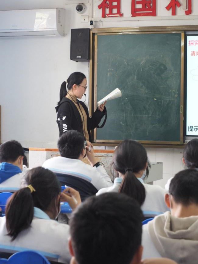之前,我们对“老师”的职业存在着无限的遐想:她会是上课时严肃的巡视,会是批改作业时的一丝不苟,会是课间和同学们打成一片……走入四十九中,一切的想象都开始成为现实。经过了听课,备课,讲课的实践。才明白课堂时间宝贵,原来每一句话都需要仔细斟酌。学生们的思维天马行空,总会有奇妙的问题和出乎意料的答案。上完第一节课,指导老师对我讲,在屏幕上、课本上、作业上,你面对的只是一个个待教的知识点,但在教室里,你面对的是鲜活的年轻生命,他们的每一个疑问都不该被忽视,作为老师,引导他们向正确的方向思考,也是我们的职责。老师的话语使我开始反思,也让我更加重视每一堂课对孩子们三观的培养和引导。“在学中教,在教中学”,感谢这次实习经历,让我对教学有了不同的体会,我也会一直学习、一直成长,直到成为一名合格的老师。