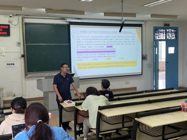 课堂伊始,陈杰老师首先为大家阐释了新课程、新课标、新高考、新教材的改革变化,强调新时代政治老师应不断革新教育教学理念,提升专业素养和教育教学能力。