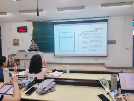 程老师用部分专业能力强的教师,在教师招聘中因缺乏新教学理念而被淘汰的案例引入,并通过图片、视频等丰富的形式,引导同学们一步步体会到熟练掌握新课标对于教师的重要性。程老师强调,课堂是教学的主阵地,合格的教师不仅要理解新课标理念,而且要能够将新课标理念有机融入课堂教学。