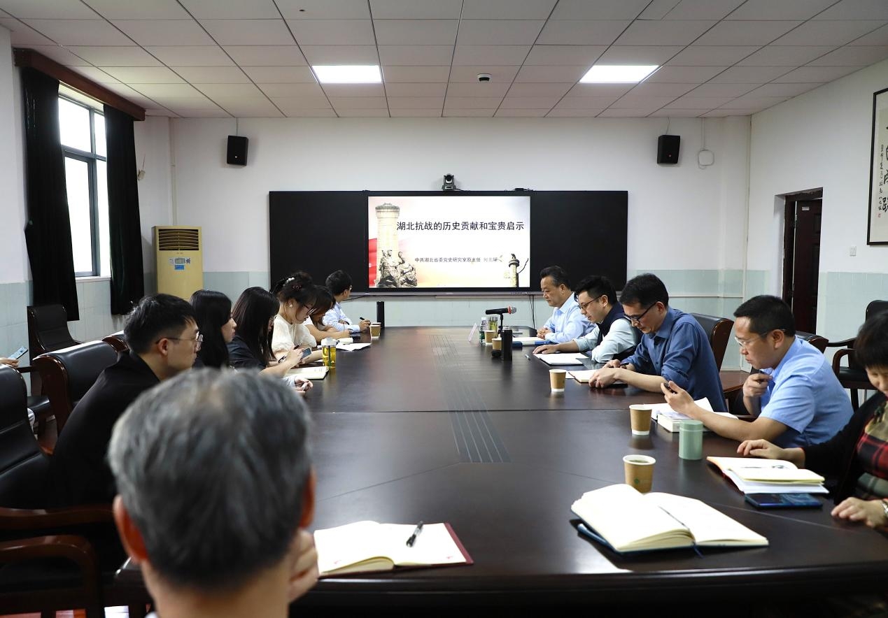 何教授在专题报告中,系统梳理了湖北抗战的历史贡献与现实启示。他立足武汉会战的战略背景与战役进程,指出这场规模空前的防御作战重挫了日军速战速决的侵略野心。通过解析随枣、枣宜、鄂西等系列会战,揭示了湖北正面战场通过空间换时间的历史贡献。以新四军第五师在中原敌后战场的斗争实践为例,彰显中国共产党在抗日战争中的中流砥柱作用。在总结历史经验时,他强调必须始终高扬爱国主义旗帜,必须始终坚持党的领导,必须始终根植于人民,必须始终扭住发展。