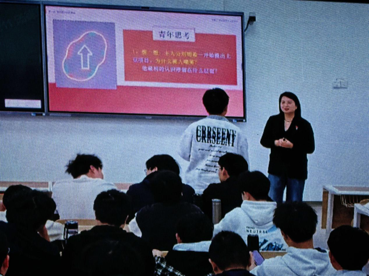 在下午的公开课上,罗超老师聚焦马克思主义认识过程论开展专题讲授。她围绕感性认识到理性认识、理性认识回归实践的辩证发展逻辑,清晰阐释认识具有反复性、无限性和上升性的核心理论内涵,层层拆解课程重难点。课堂采用案例教学+探究式教学模式,以《土豆少年》微电影为鲜活教学载体,结合影片成长情境设置探究问题,引导学生主动思辨、深度思考,在具象案例中体悟认识螺旋上升的哲学道理。整堂课教学设计精巧、逻辑严谨,摒弃传统单向灌输式授课,有效调动学生课堂参与积极性,理论讲解有深度、案例融入有温度,充分展现了扎实的理论功底和先进的教学理念。