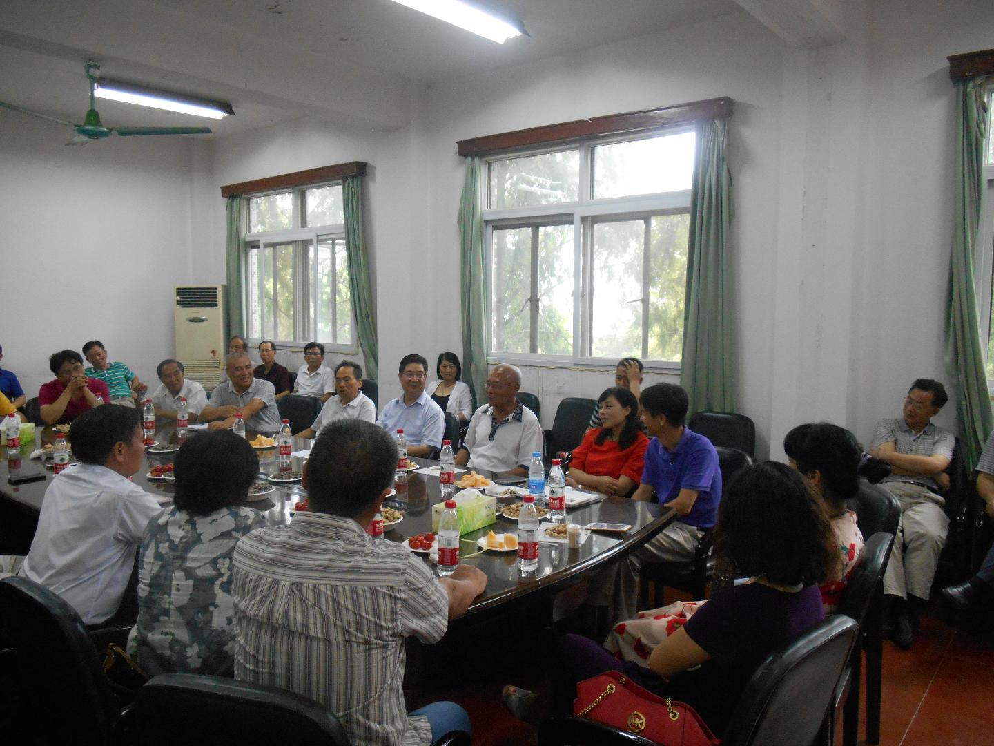 四楼会议室亲切座谈,对校友返校探望母校及恩师表示热烈欢迎。
