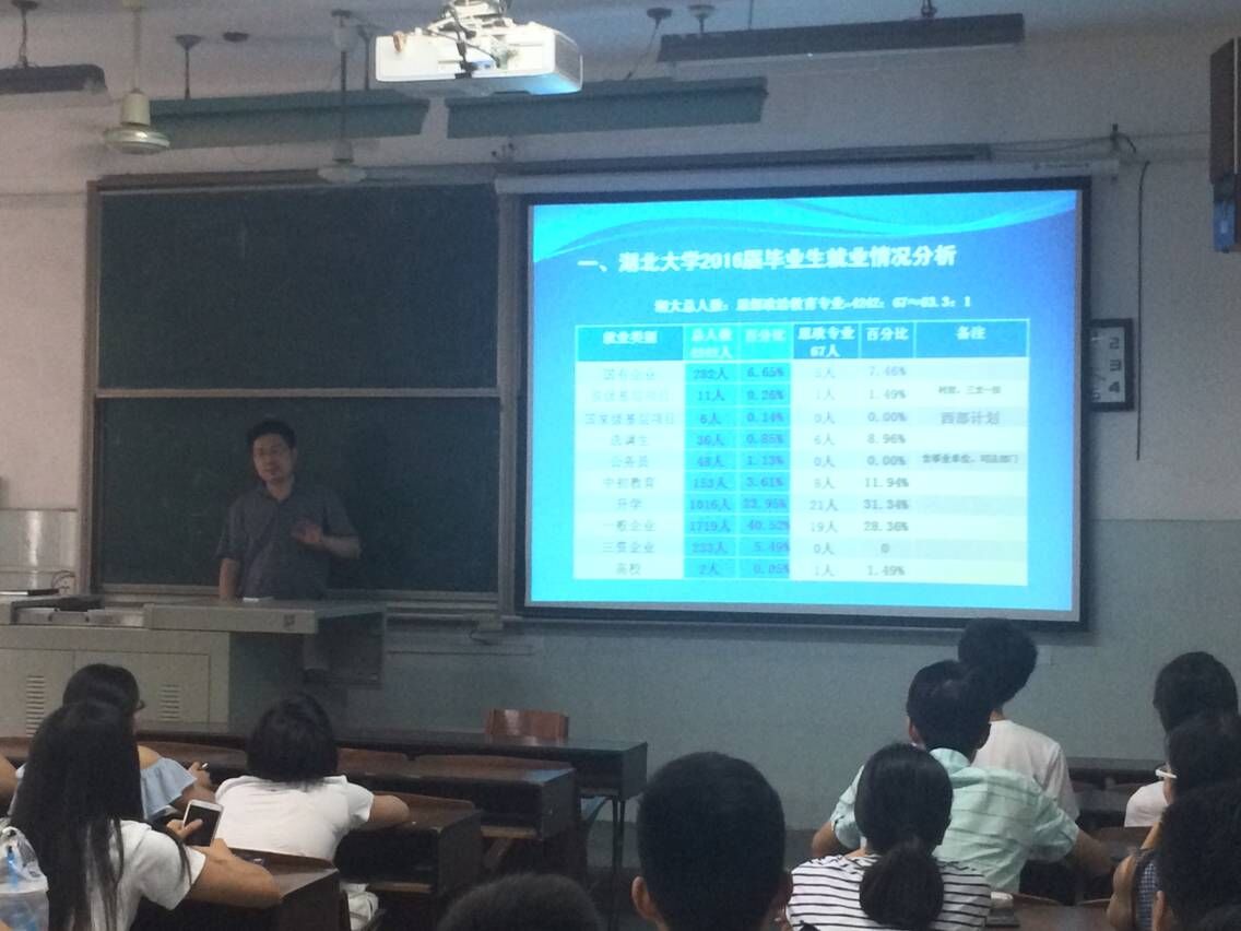 2016届毕业生和思想政治教育专业2016届毕业生的就业情况进行综合分析和比较后,为思想政治教育专业2017届毕业生未来的就业和发展方向提出了专业性的意见和建议。王雄书记在会上谈到:“从思想政治教育专业的学生历年来的就业和发展情况看,考研、考公务员和选调生、去国企或一般的企业工作以及从事中初教育不失为本专业学生较好的选择。”