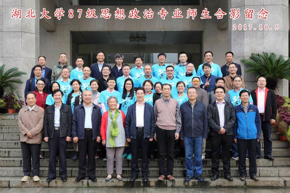 87级政教班主任俞良早老师以一首诗表达自己的喜悦之情:政教87校园回,沙湖秋波生光辉。执手欢言恋语长,挽肩放歌轻舞飞;树苗株株成高材,园丁人人展笑眉。老牛犁耕滞江东,未得聚会心意灰。