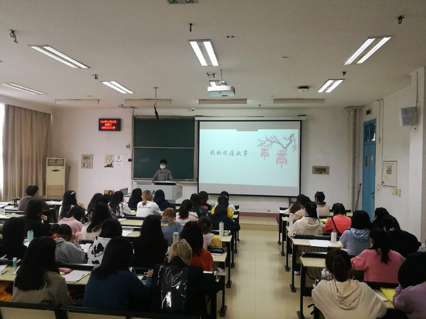 徐方平教授讲授的《中共党史》,在4—203教室开展了与“我的抗疫故事,中国的抗疫故事”课程作业同步的课堂分享展示活动,思想政治教育专业2018级全体学生参与了展示,展示既响应了国家“抗疫精神融入思政课堂”的号召,也是《中共党史》课程理论联系实际的生动实践。学习委员张晶晶主持展示活动。