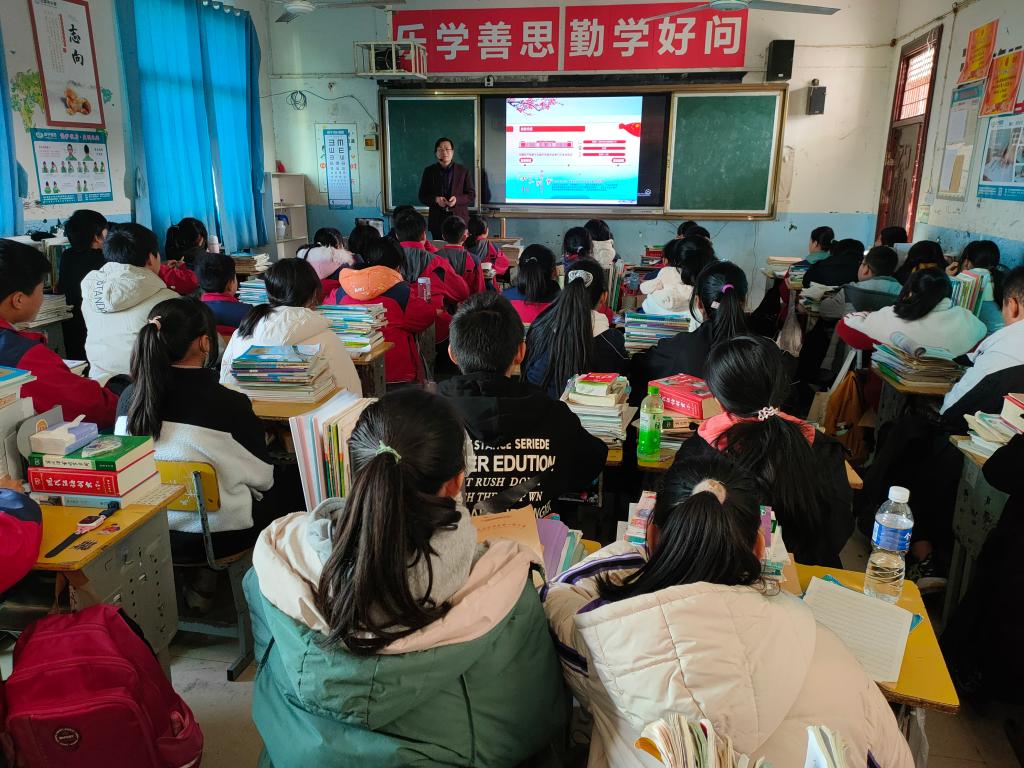 分会场,杨海军副教授围绕十九届六中全会精神的主要内容、建党一百年取得的主要成绩,结合教育发展和中学生的特点为八年级学生上了一堂生动的思政课。