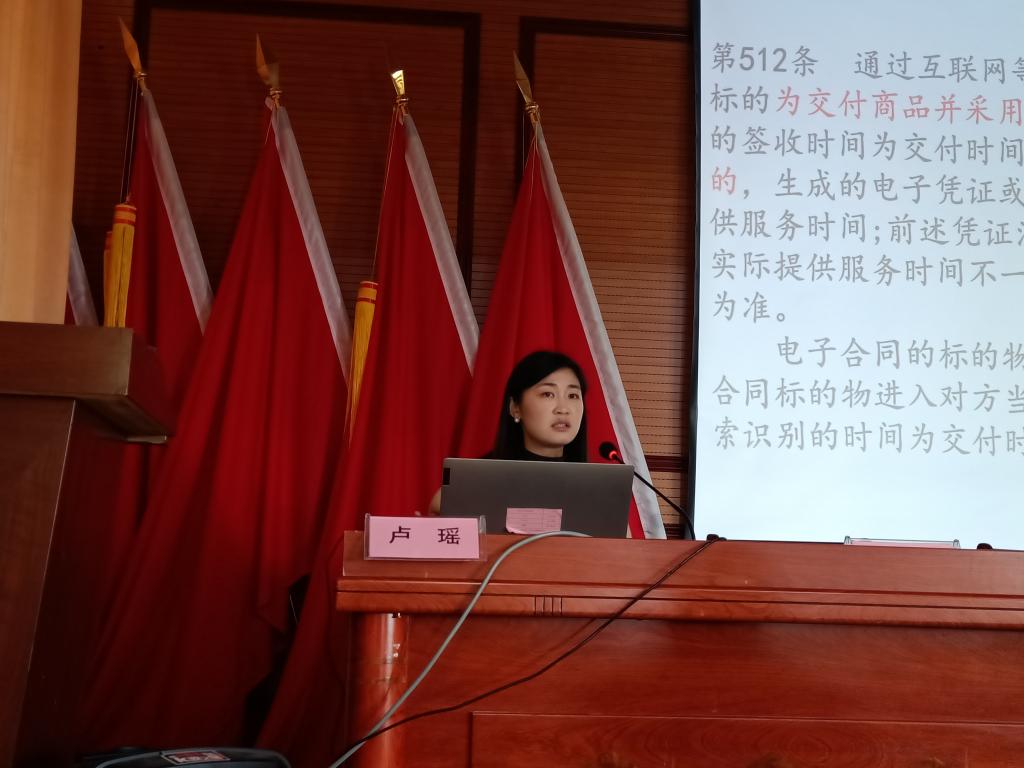 在送法律活动中,卢瑶博士以《<民法典>——新时代人民权利的宣言书》为题,以生动鲜活的事例系统讲解与民众日常生活息息相关的法律条规,强调《民法典》为人民群众谋利益的根本指向,并与村社法律工作者座谈,解答司法实践中的难题。
