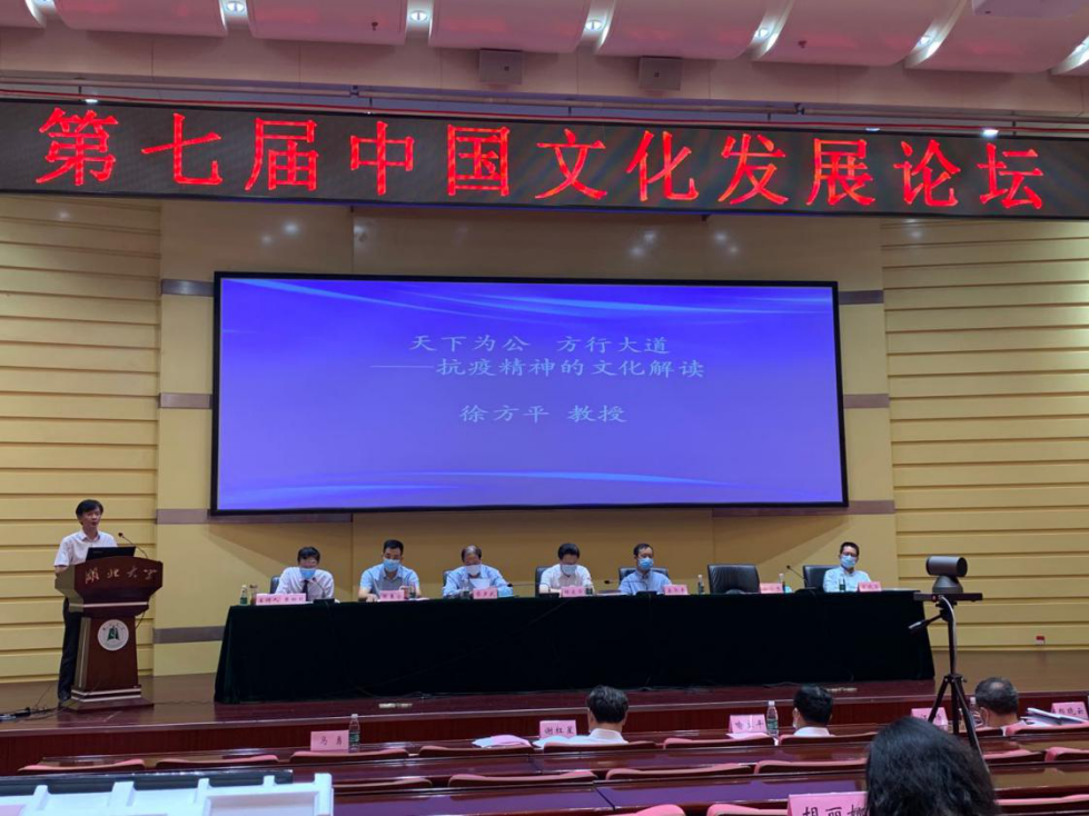 徐教授在论坛作了《天下为公 方行大道——抗疫精神的文化解读》的演讲。他指出:尽管中国抗疫取得了举世瞩目的战略性成果,但是还没有到鸣锣收兵的时候。4个多月惊涛骇浪的中国抗疫,留下了许多宝贵的经验教训,形成了弥足珍贵的抗疫精神。学界认为主要包括:万众一心、同舟共济的守望相助精神;闻令而动、雷厉风行的英勇战斗精神;顾全大局、壮士断腕的“一盘棋”精神;舍生忘死、逆行而上的英雄主义精神;充满信心、敢于胜利的积极乐观精神。他认为这些抗疫精神的形成,在很大程度上离不开“天下为公”、“艰苦奋斗”和“以人民为中心”等传统文化、革命文化和社会主义先进文化的滋养。
