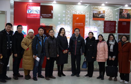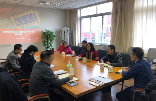 党委书记王震、副院长鲍金、“全国优秀教师”施索华教授以及思修教研室杨卫华老师进行了接待。首先,杨卫华老师对思修教研室的基本情况进行了介绍,并对新教材内容、集体备课、教学方法、社会实践等方面进行了深入交流。之后,施索华教授以自己26年的教学实践为基础,讲述了如何上好思政课的一些经验。鲍金副院长则从思政课教学改革、学科建设和教师队伍建设等方面进行了介绍。