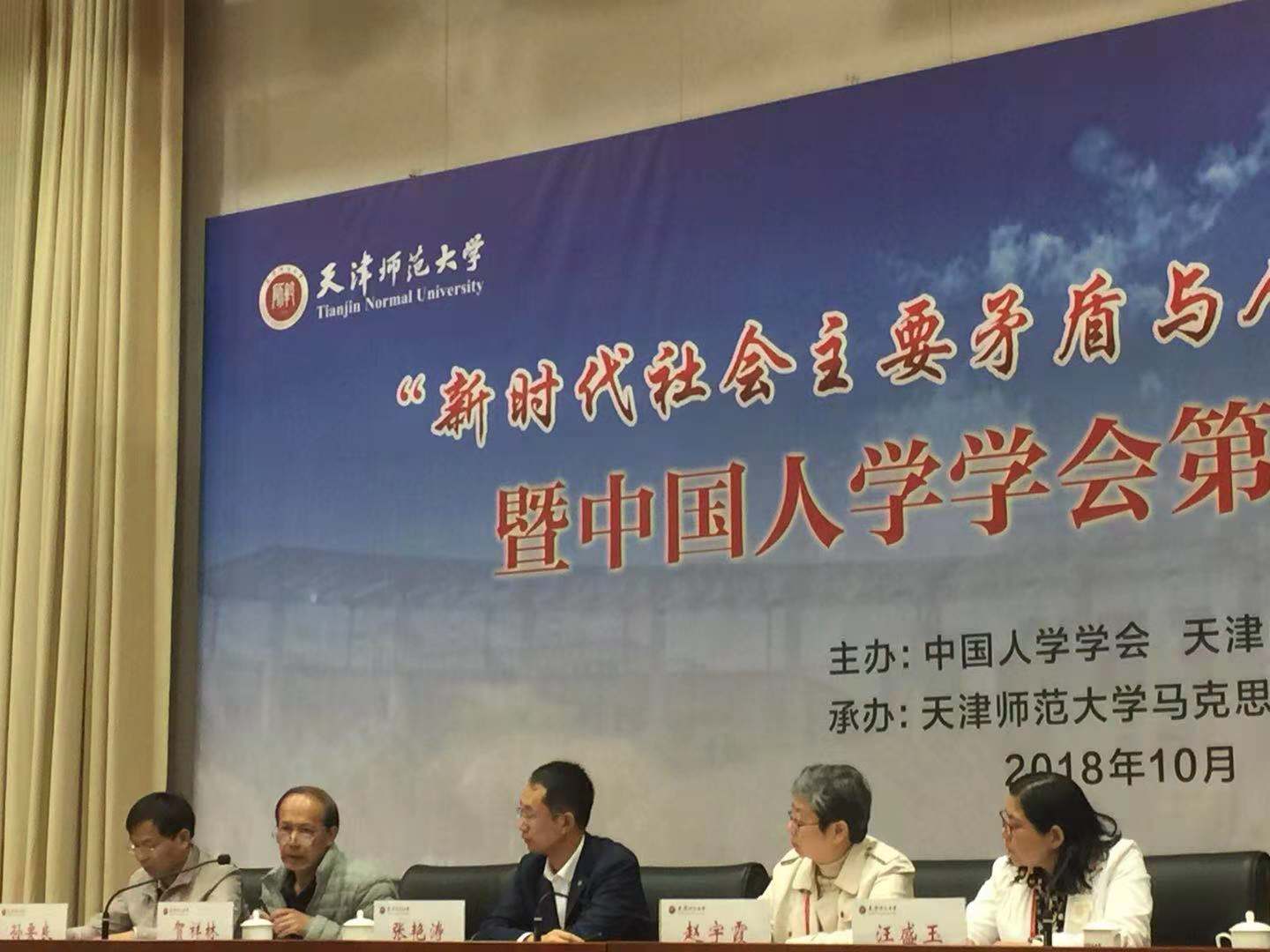 2018年10月20-21日,“新时代社会主要矛盾与人的发展”研讨会暨中国人学学会第二十届年会在天津师范大学召开。本次研讨会由中国人学学会和天津师范大学主办,天津师范大学新葡京 承办。来自国内部分高校、科研院所及期刊杂志的百余位专家学者参加了研讨会。新葡京 教师贺祥林、于桂凤参加了本次会议,贺祥林教授在大会了做了主题发言。