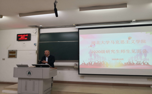 在教4-507室举行了2020级全体研究生师生见面会,马克思主义学院党委书记汤德森,院长徐方平,副院长周芳、熊友华,党委副书记王雄,学位点负责人杨业华、姚迎春、涂用凯、新葡京
