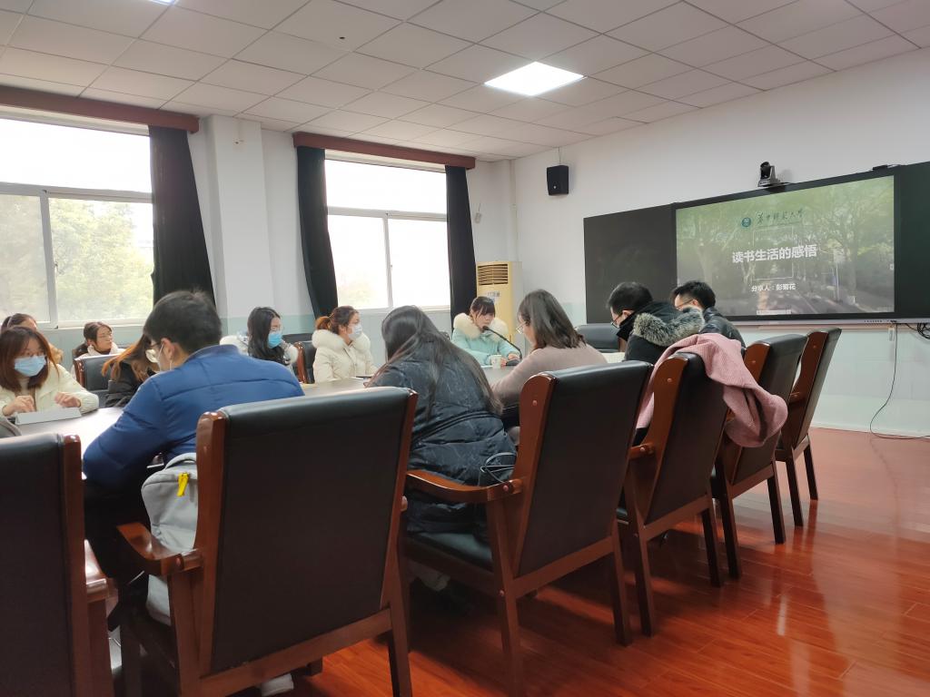 彭菊花副教授以人是什么、世界是什么这两个哲学问题为逻辑起点,从“生命有长度、有宽度、有深度”“生命在读书中拓展”“生命在科研中延伸”三个方面,充分探讨了生命、读书与科研的辩证关系。她指出,要将自身的成长放在一个更长、更宽、更深的背景中去思考与实践,让我们的精神生命在读书思考与科研中得以丰富,让我们的个体生命在服务他人与社会中得以强壮,让我们的青春生命在增强本领与才干中得以丰满。