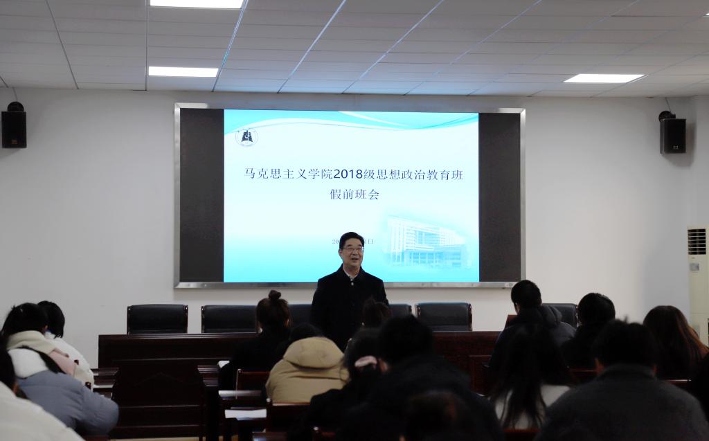 副校长钱建国作为副班主任出席本次班会,2018级思政专业全体同学参加,班主任邹浩老师主持会议。
