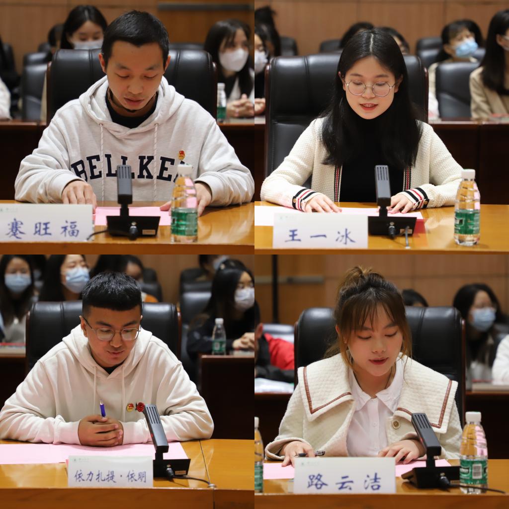 在讲授思政课前,谢红星以副班主任的身份参加了思政1901班班会活动。班级蹇旺福、王一冰、依力扎提·依明、路云洁、覃扬帆5名学生代表分别从“携笔从戎”、“热心公益”、“基层实践”、“辛勤育人”、“阅读经典”等方面进行了主题发言。