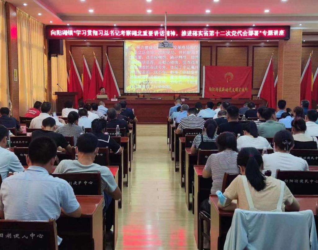 接着,杨海军老师宣讲了湖北省第十二次党代会精神。在回顾湖北省过去五年的工作成绩和经验启示后,全面系统地阐释和解读了准确把握新发展阶段湖北面临的新形势新任务、完整准确全面贯彻新发展理念,重点从九个方面解读了加快建设全国新发展格局先行区、坚持和加强党的全面领导,从六个方面解读了切实提高建设全国构建新发展格局先行区的能力和水平。最后指出省第十二次党代会精神为今后一个时期湖北发展提供了行动纲领。本次理论热点面对面宣讲政治站位高,理论解读精准,重点突出,同时结合咸宁市、咸安区和向阳湖镇现实情况进行拓展,贴近基层,贴近农村,贴近群众,具有较强的理论性和实践性。