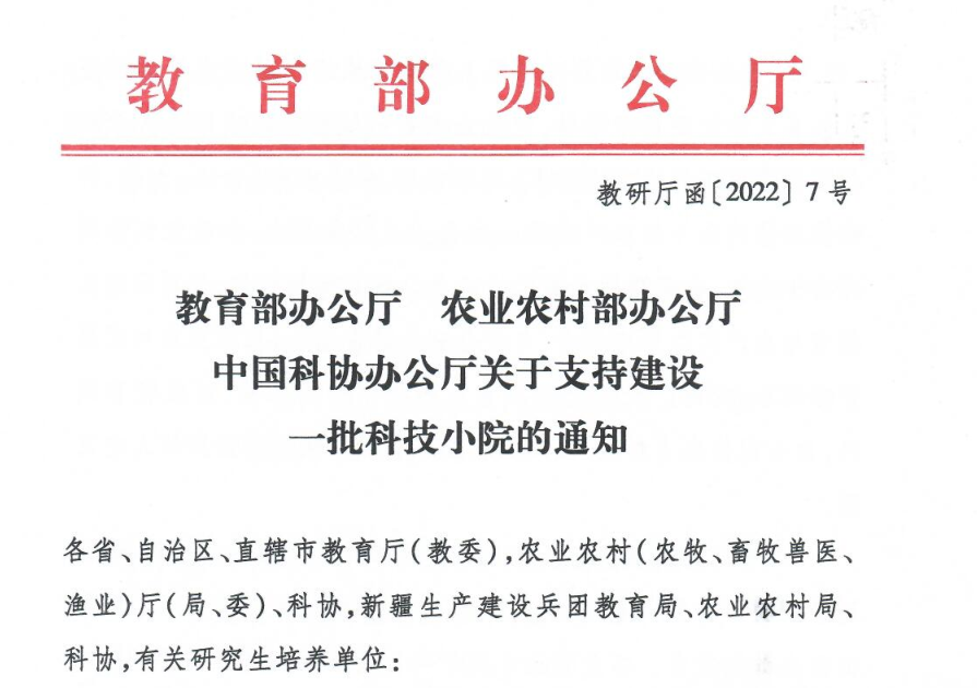 近日,教育部、农业农村部、中国科协联合下发《关于支持建设一批科技小院的通知》(教研厅函〔2022〕7号),对全国68个单位的780个科技小院予以支持建设。新葡京
