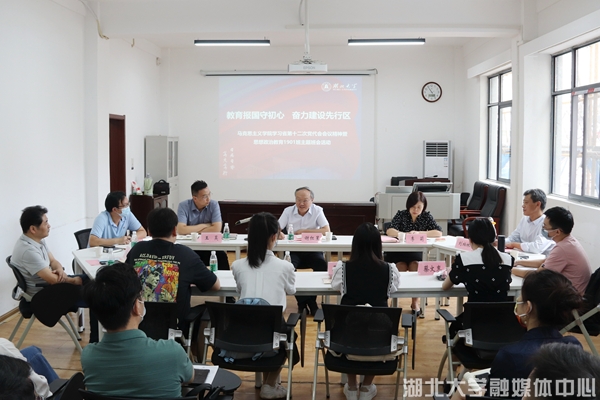 会上,思想政治教育专业1901班学生代表艾克热木江•艾尔肯、陈艺思、覃扬帆等3位同学分别讲述了胡银银、郭劲松、熊友华老师3位老师争当学生引路人的感人故事。“荆楚好老师”郭劲松教授分享了从教30年感悟。学生代表孔俊轩、蔡文惠汇报了省第十二次党代会精神学习的心得。思政课教师王昊领学了省第十二次党代会精神。
