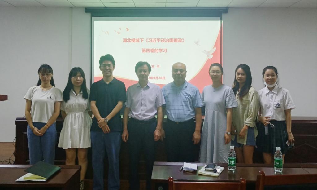 报告中,徐方平教授以“湖北视域下《习近平谈治国理政》第四卷的学习”为题,系统深入阐释了习近平总书记5次考察湖北的重要讲话精神,并结合“回眸湖北‘敢为人先’的光荣历史”“展望湖北‘中部崛起’的辉煌成就”“湖北肩负起了保障国家安全的历史使命”三个方面的内容和湖北省第十二次党代会部署安排,对《习近平谈治国理政》第四卷的丰富内涵和精神实质进行了专题辅导。