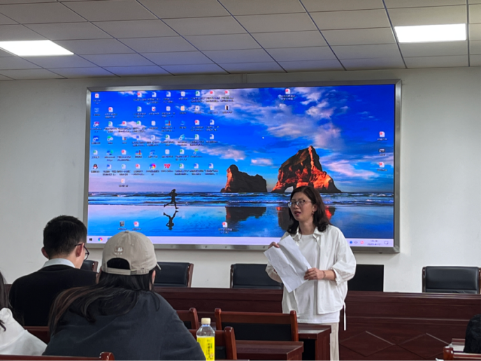 在410报告厅举行实习总结大会,副院长徐信华、指导教师代表以及思想政治教育专业2020级全体同学参加,政教系副主任胡银银主持会议。