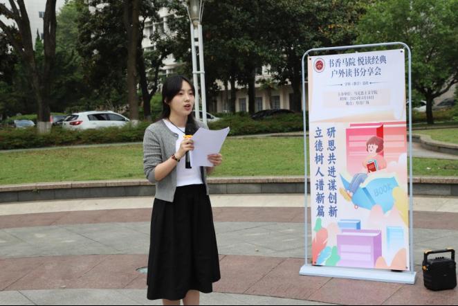 (通讯员祁丹悦 李璐瑶)春色恰如许,读书正当时。为响应2024“书香武汉·全民读书月”活动,营造健康文明的校园文化氛围,激发同学们对读书的兴趣,4月18日上午10:00,学科教学(思政)专场户外读书分享会在月亮广场举行。院党委副书记晏妮、硕士生导师陈晨、辅导员冷自衍、实习辅导员王瑨婧出席此次活动,23级学科(教学)思政专业全体学生参与本次活动。
