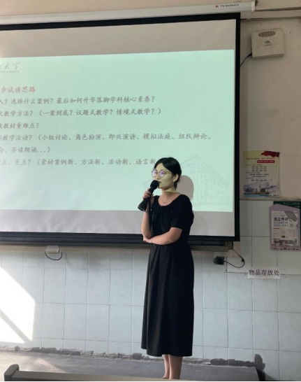 5月17日下午,冯秋月同学就教学竞赛上岸经验、自身求职经历,从面试穿着、教姿教态、教学内容选择、教学活动设计等多方面,为同学们进行系统的讲解。